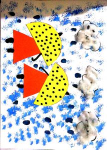 Today we celebrate rainy day and activity related to rainy day has been done. In Music a new rhyme i hear thunder has been introduced and story telling has been done.