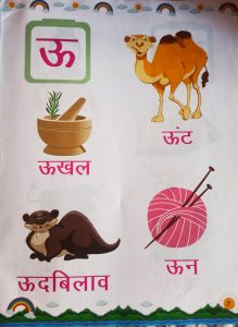 Today practice of swar ‘ऊ’ in workbook pg no. 18 and book reading has been done in the class.