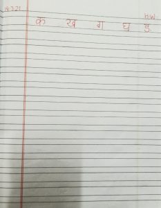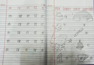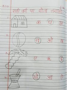 Today क-ड़, चित्र देख कर पहला अक्षर लिखो, सही वर्ण पर गोला लगाओ in notebook has been done in the class.