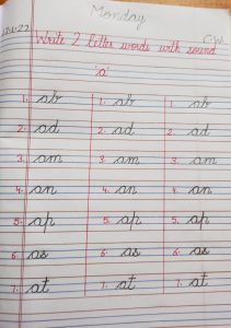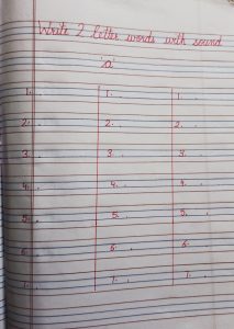 Today two letter words with vowel sound a in notebook has been introduced in the class.