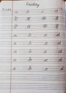 Today alphabets a to d with phonic sounds in notebook has been done in the class.