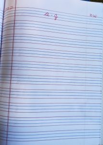 Today practice of alphabet a to z in notebook has been done in the class.