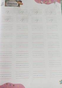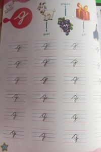 Today practice of alphabet g in workbook pg no. 22 and book reading has been done in the class.