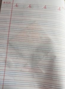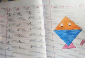 Today alphabet ‘k’ has been introduced and draw and colour a kite in notebook has been done in the class.