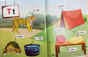 Today alphabet ‘t’ in workbook pg no. 60 has been introduced and book reading has been done in the class.