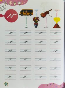 Today alphabet ‘v’ has been introduced in the workbook pg no. 68. Book reading has been done in the class.
