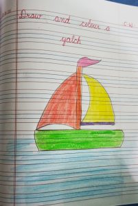 Today practice of alphabet y and draw and colour a yatch in notebook has been done in the class.