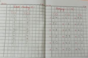 Today back counting 10-1 and dodging 1-50 in notebook has been done in the class.