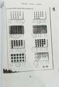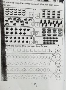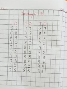 Today count and circle the numeral and count and write in activity book pg no. 21 & 22 and counting 67-96 in notebook has been done in the class.