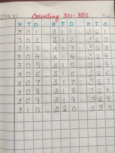 Counting September 27, 2021 Inderjeet kaur Home 🏘️ Work for the dayWrite and speak counting 301 to 350.