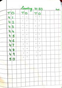 In maths counting 1 to 50 and writing pattern of 41 to 50 has been done. .