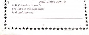 In music a new rhyme ABC tumble down d and in arts tea pot coloring and carry bag has been done.