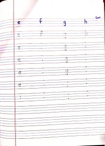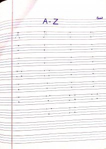 English – Write alphabet e, f, g, h and A to Z in the notebook.