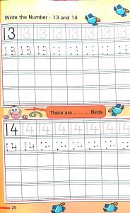 In maths counting 1 to 30 and writing pattern of digit 13 and 14 has been done.
