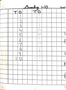 Maths – Write 1 to 10 in the notebook and digit 13 and 14 in the workbook.