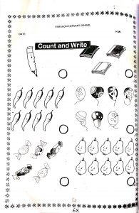 In Maths counting 1 to 20 and writing pattern of digit 6 and count and write has been done.