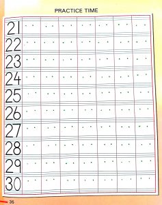 Maths – Write counting 1 to 20 in the notebook and 21 to 30 in the workbook.