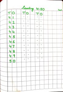 In maths counting 1 to 50 and writing pattern of 411 to 50 has been done. .