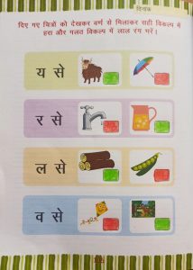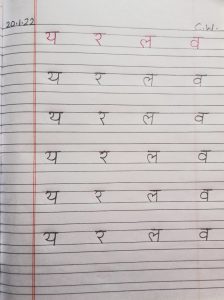 Today exercises on vyanjan in workbook pg no. 96 and 106 and vyanjan य- व in notebook has been done in the class.