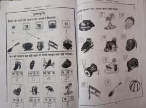Today exercises ( चित्र पहचान कर पहला अक्षर लिखो) in activity book pg no. 58-61 has been done in the class.