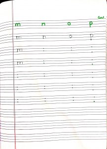 English – Write alphabet m, n, o and p in the notebook.
