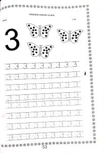 In Maths counting 1 to 20 and writing pattern of digit 3 has been done.