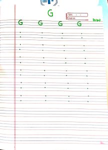 English – Write alphabet G in the workbook .