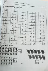 Today the concept of missing numbers in activity book pg no. 31 has been done in the class.