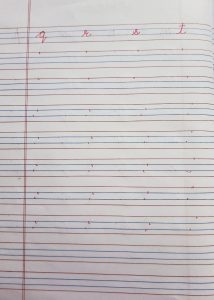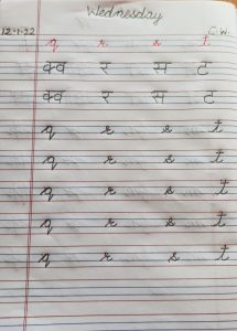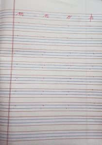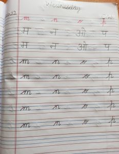Today phonic sounds of letter m to t in notebook has been done in the class.