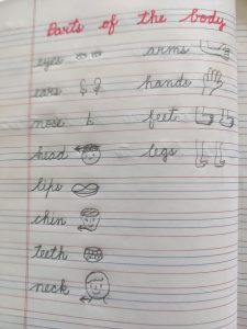 Question answers and Parts of the body 👅👁️ October 7, 2021 Inderjeet kaurHome 🏠 work for the dayLearn and write the same.Test of difficult words of pg no.25 tomorrow.
