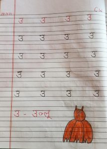 Swar ‘ उ ‘ has been introduced and practice of swar उ in notebook has been done in the class.