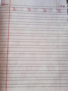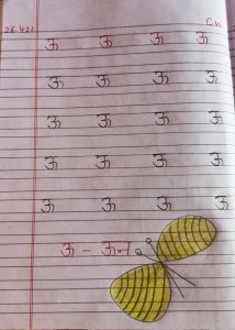 Today swar ‘ऊ’ has been introduced and practice of swar ‘ऊ’ in notebook and book reading अ-ऊ तक has been done in the class.