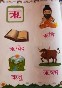 Today Swar ‘ऋ’ has been introduced and practice of swar in notebook and book reading has been done in the class.