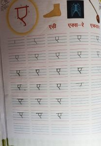 Today practice of swar ‘ए’ in workbook pg -22 has been done in the class.
