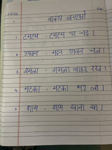 Homework – आ की मात्रा के 5 वाक्य बनाओ।