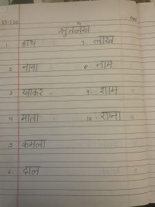 Homework -write 10 words of आ की मात्रा वाले शब्द।