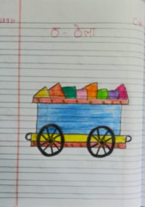 Today practice of vyanjan ठ and draw and colour a ठेला in notebook has been done in the class.