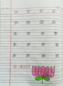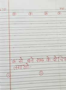 Vyanjan ‘क’ July 6, 2021 Jinny kapoorToday practice of vyanjan ‘क’ in notebook has been done in the class.Homework for the dayHindi- Do vyanjan in notebook.