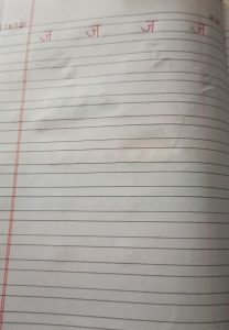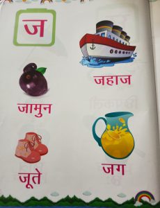 Today practice of vyanjan ‘ज’ and draw and colour a जहाज in notebook and book reading has been done in the class.