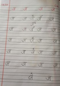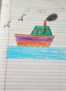 Today practice of vyanjan ‘ज’ and draw and colour a जहाज in notebook and book reading has been done in the class.