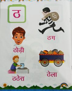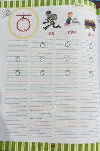 Today vyanjan ठ has been introduced and practice of vyanjan in workbook pg no. 64 and book reading has been done in the class.