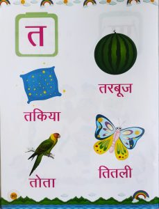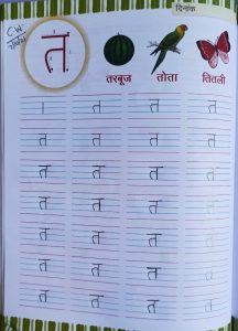 Today vyanjan ‘त’ has been introduced in workbook pg no. 74 and book reading has been done in the class.