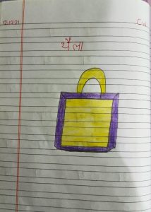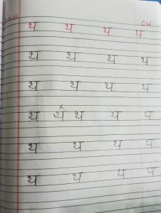 Today practice of vyanjan थ and draw and colour a थैला in notebook has been done in the class.