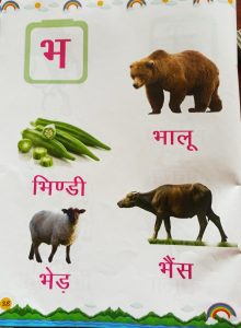 Today introduction of vyanjan भ in workbook pg no. 92 and book reading has been done in the class.