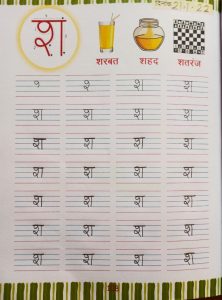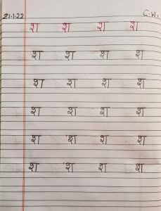 Today vyanjan श in workbook pg no. 108 and in notebook has been done in the class.