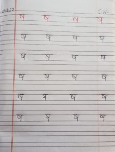 Today introduction of vyanjan ष in workbook pg no. 110 and in notebook has been done in the class.