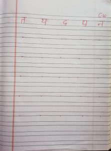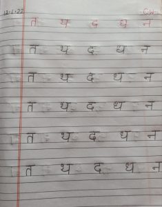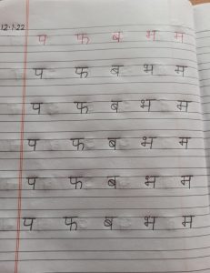 Today practice of vyanjan त से म तक in notebook has been done in the class.