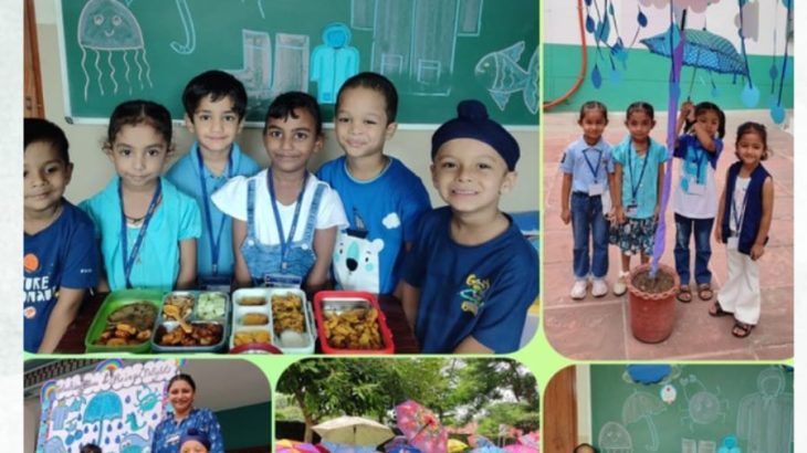 A day of pure fun and color magic unfolded at our school as we celebrated the *“Rainy Day as Blue Color Day”* with a dash of rain dance excitement! Rainy Day is always a fun time for the kids. To celebrate these showers of monsoon, the pre-primary students of Paragon Convent School came all armed in their raincoats & umbrellas to splash & revel in the rain. The students of Kindergarten were brought out in the open by their teachers with umbrellas and raincoats to enjoy the playful rainy weather. It was fun singing rhymes. Also, students were made aware of the rainy season’s food, creatures, and apparel, etc. The kids really had a festive time with their friends and teachers. This Rainy Day celebration was full of fun & frolic.